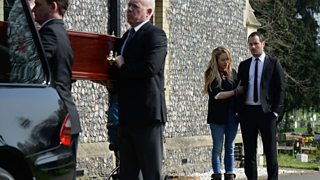 Ronnie offers to go with Charlie to Nick's funeral but he says no. She decides to go and support him anyway, but when she arrives at the crematorium she sees that he’s already got someone there to lean on. Roxy...