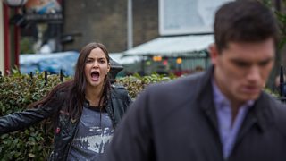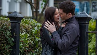 Lauren is propping up the bar in The Vic, drinking alone, and unhappy. When Joey finds her like this, he takes her for a walk, to sober her up. Unfortuantely, Lauren can read a signal about as well as she can read Chinese at the moment, and getting the wrong idea, she moves in for a kiss.