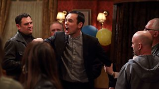Just when you thought she might be turning over a new leaf, Janine uses the party to flaunt Scarlett in Michael's face at every given oppurtunity. While Michael tries to keep his compusure, he finally cracks and causes a drunken scene before leaving The Vic... we suppose there's always got to be one that has to be dragged out of the end of a party.