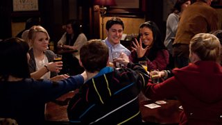 Whitney, Tyler and pals head to The Vic to celebrate their engagement - Aw, she looks pleased as punch. But who isn't jumping for joy when they hear the 'happy' news?