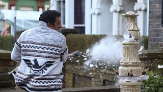 Zainab unveils her water fountain to the Walford public (a few people were there to see it), and makes the 'event' all about her. Masood can't stand Zainab's selfishness anymore, and tells her so! When she doesn't listen he directs his anger onto her precious fountain!