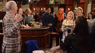 It’s Donna’s birthday - and Pam is determined to make it special by organising a last minute party in The Vic. Despite the sparkly banner and balloon, Donna fears that no one will turn up seem to be justified.
