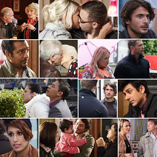 It's snogs galore in Walford this week. We hate to kiss and tell but... Lola and Ben (did you see that one coming?), Pat and Norman (what will Jean do to Pat when she hears about this - feed her some week-old sausage surprise?). Plus, well, you'll have to watch to see if there are any more. Game of the week - spot the snogs...