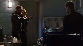 With a lighter and petrol at the ready, Dean gets to work in the barrel store. It's not long before Nancy and her nifty nose head out back to investigate. Before long, Mick also smells a rat (or just the petrol) and finds his brother has taken his daughter hostage. Now that's a tricky family situation! How far will Mick go to save his Nancy and indeed, The Vic!?