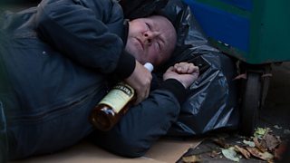 Next morning it looks like Phil's been thrown out with the empties when he finds himself lying in the gutter.