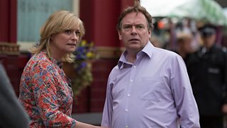 With their dark secret weighing heavily on their mind, Jane and Ian panic when the police arrive in Albert Square – is the truth finally about to be exposed?