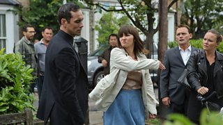 Janine's spidey-sense is clearly attuned to Michael's presence and she's over like a shot, livid that he's breaking the injunction stopping him from seeing Scarlett.