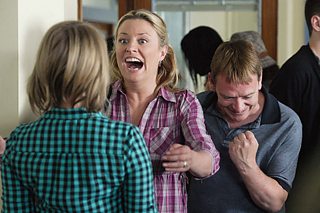 Lucy and Peter get their exam results. Is Peter hoping for an 'A' in advanced deep fat frying? Lucy, meanwhile, probably didn't need to open the envelope to discover how well she did. Naughty girl.
