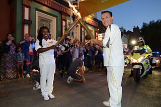 Walford residents celebrated the moment with a good old East End street party, and most of the cast were present to give Billy a high five as he lapped the square with the torch.
