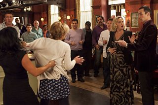 Poor old nobody-believes-me Jean. As she spirals out of control, she takes not only a load of bar glasses with her but also, Kat. How will Alfie react to seeing his wife on the floor, covered in glass?!