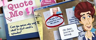 Meanwhile, Quote Me offers you four juicy bits of dialogue from next week's epsisodes. Can you guess who says what though?