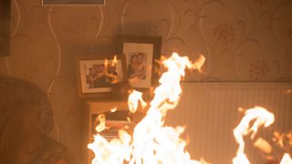 Feeling he has no choice, Alfie goes for it and starts a bin-based blaze. Flames tear through the house. But he is 100% sure that nobody is inside, isn't he?!