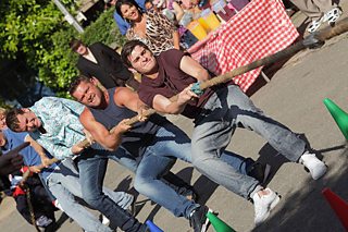 Alfie, Christain and Anthony get to grips with a tug of war in the Square. But who are they trying to pull and who will win? Place your bets everyone!