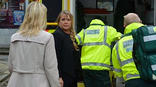 It's not long before the ambulance is back to deal with another incident. As the residents look on in horror, Kush holds Martin back after another shocking incident. Is Stacey in a bad way?