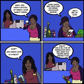 Ed Sellek is back with his latest take on life in Walford. This time Kim and Denise get into a fizz about an unusual shopping list!