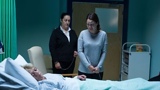 Stacey is taken in to see her mum in hospital. She’s shocked to see Jean looking so helpless.