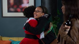 Kim throws Vincent a birthday bash... dressed as Mrs Claus (at least that'll make it memorable?!). And she's really chuffed when Libby turns up out of the blue with the rest of the family. Especially because she gets to show off her swanky new pad to someone new!
