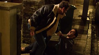 Kush tries to justify himself by saying that he wanted Martin to have a night off from worrying. Martin's having none of it and it escalates into a big punch up!