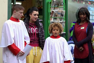 Denise ups her gameand brings out a secret weapontoentice the customers into the Minute Mart- dodgycarol singers. Will this ensure her victory?