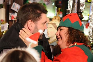 Heather's helping out in Santa's grotto at The Vic when Andrew comes to see her (bless him). What does he do to deserve a Christmas smacker from Miss Trott?!