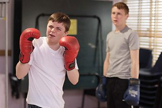 He's behind you! Raging Ben spars with Jay in an attempt by Phil to toughen him up for juvenile detention.