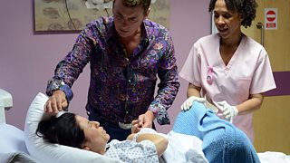 Kat thanks her lucky stars that she is in the right place at the right time after her water breaks whilst visiting Jean in hospital!