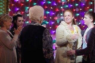 Hurrah! Bianca's back in Walford! What a treat for the Butcher clan... But how did she get that shiner? And after last week's barny, has she forgiven Ricky?