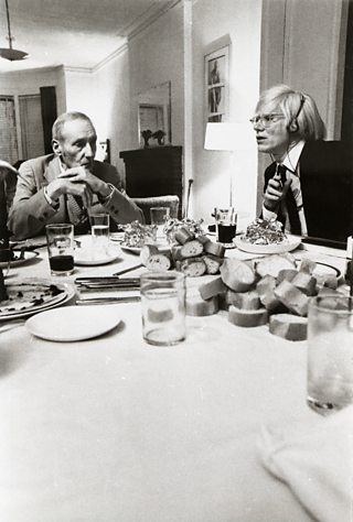 Scene from “Arena: Chelsea Hotel” William Burroughs and Andy Warhol having dinner in the room where Arthur C. Clarke wrote the novel 2001: A Space Odyssey