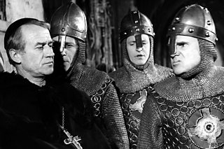 A troublesome priest in trouble: Cyril Cusack in T.S. Eliot's play Murder in the Cathedral, in the series Festival - BBC TV, March 1964