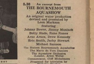 On 21 July 1955, BBC outside broadcast cameras went to visit a lively water spectacle in Bournemouth. The BBC Genome billing for the programme, The Bournemouth Aquashow, sparked a memory for one reader.