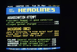 On the morning of October 24th, 1986, viewers were treated to a selection of pages from the BBC’s Ceefax text service for a whole 55 minutes... (image is from 1981)