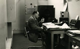 Kay's husband, Len Rumens, pictured at Bush House. The couple met at the BBC.