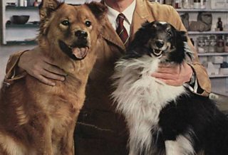 4) These cute doggies are the stars of this 1978 cover for a popular drama of its day, but who is their human companion here? And name the show too.