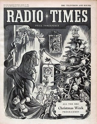 If you look closer, the homely scene includes a television set - a fact reiterated by the magazine's introduction to the BBC's Christmas programming: