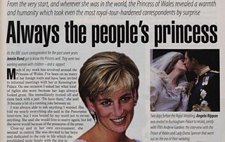 There then followed a repeat of the documentary, Diary of a Princess, first broadcast earlier in the year. An obituary programme, Diana: a Tribute, was on at 8pm, followed by another news bulletin and repeats of Diary of a Princess and the St Paul’s Service. At 11.42 pm the first of several programmes of personal thoughts about Diana, entitled Reflections, was broadcast.