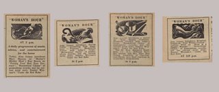 The first week of programmes featured subjects such as "putting your best face forward', "how to take care of your feet", coupon savings and pensions. The listing for each day of that first week on air was highlighted in a beautifully illustrated box.