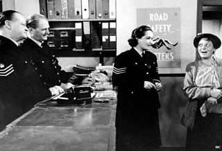 Station Sergeant Flint and PC Dixon keep safely behind the desk in Dock Green nick, while Woman Sergeant Millard (Moira Mannion) deals with a tricky customer.