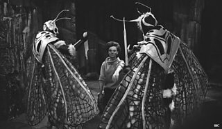 Barbara (Jacqueline Hill) encounters the alien Menoptra in Doctor Who, 1965