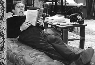 Tony Hancock relaxes with some light reading in The Bedsitter, the first episode of his 1961 series Hancock