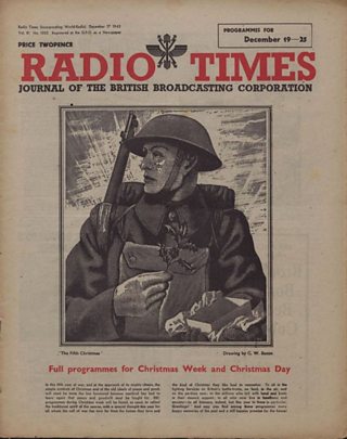 1943 The impact of conflict on the Christmas cover is boldly evident from this issue. Its message was that programmes would remain seasonal, but with emphasis on everyone engaged in the war effort.
