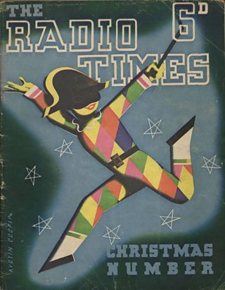 1935 This striking Harlequin design owes more to the traditions of pantomime than the snow and Santa that would come to dominate the Christmas cover in later years.