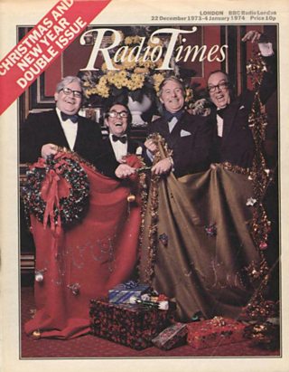 1973 Talent graces the Christmas cover in a suitably festive manner. The Two Ronnies and Morecambe and Wise - giants of the seasonal screen - were brought together for this photographic offering. In 1971, the Two Ronnies had their own Christmas cover, and the following year Eric and Ern shared again with Lulu, Paul Nicholas - and a lion.