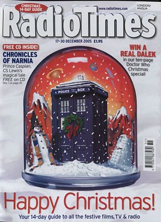 2005 The return of Doctor Who and its place at the heart of the festive schedule is reflected on this cover. But the talent is left to one side in favour of a Tardis and Dalek-themed snowstorm. A festive Dalek also graced the 2009 Christmas cover.