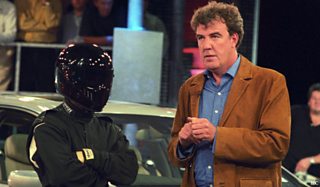 On discovering that the Stig has been painted black, Top Gear's presenter doesn't look happy...