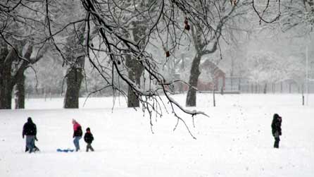 Golygfa hudolus yng nghanol yr eira