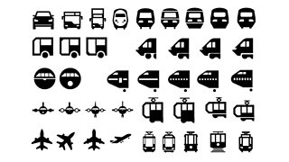 This approach continued during the conceptual design phase of the new Travel icon set. We already had a ‘car’ icon to represent ‘traffic’ in our previous core icon set. This was created in association with R/GA during the last icon design phase. However, as part of this new commission, it was now necessary to represent a number of additional modes of transport such as train, tube (underground), tram/metro, bus, ferry and commercial aircraft.