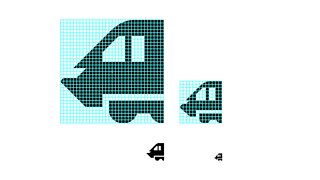 Detailed examples of the 32x32 pixel and 13x13 pixel train icon with grid (at 600% & 100%)