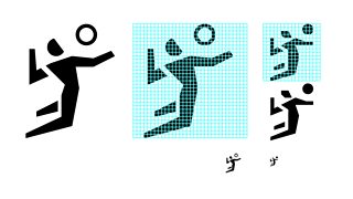 Detail of 32x32px and 16x16px Volleyball icon illustrating human treatment at 600% & 100%