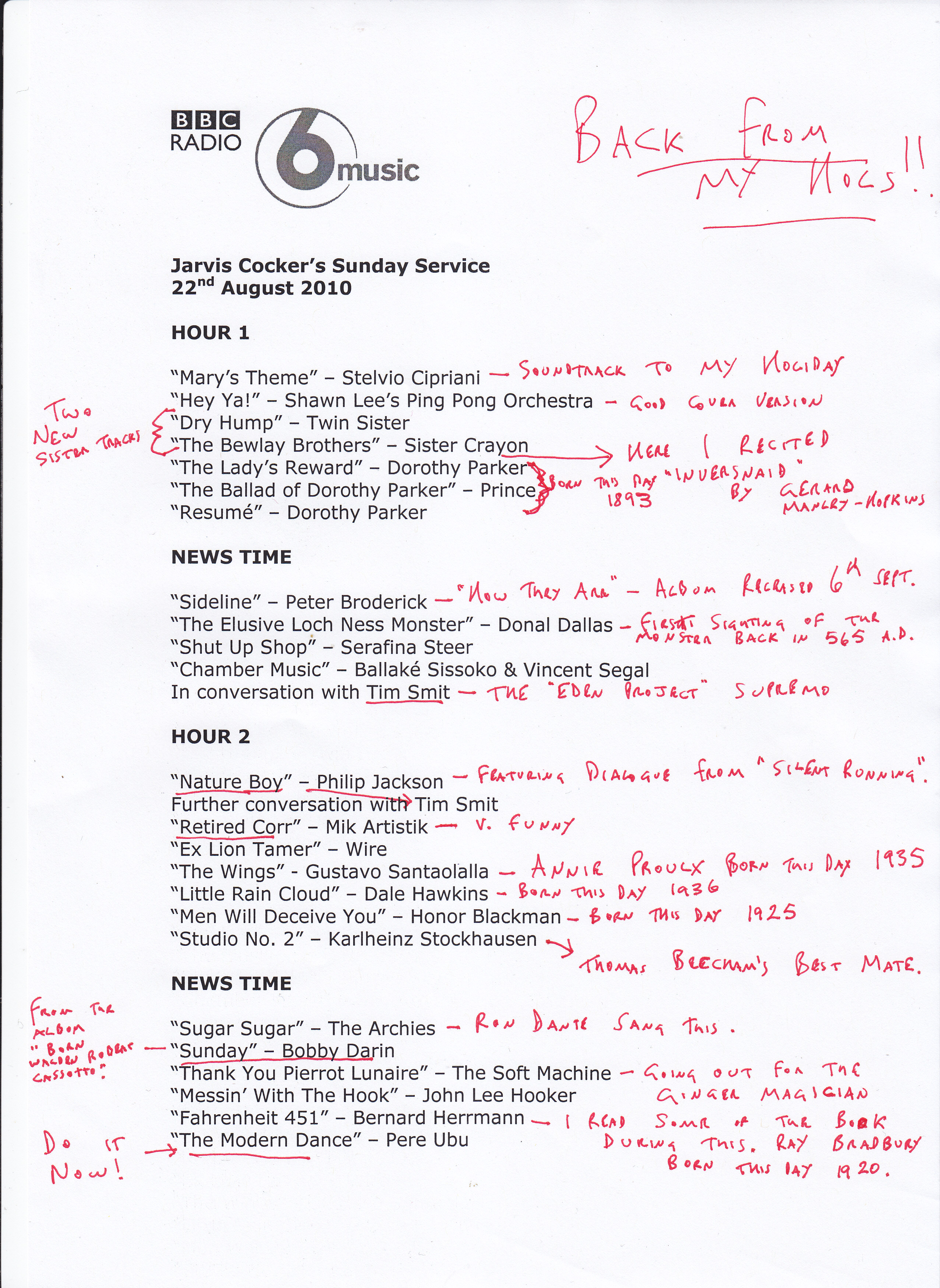 Here's a full run through of Jarvis' playlist from this weeks Sunday Service back from the Port Eliot festival and coming to you L L Live from our London studios.