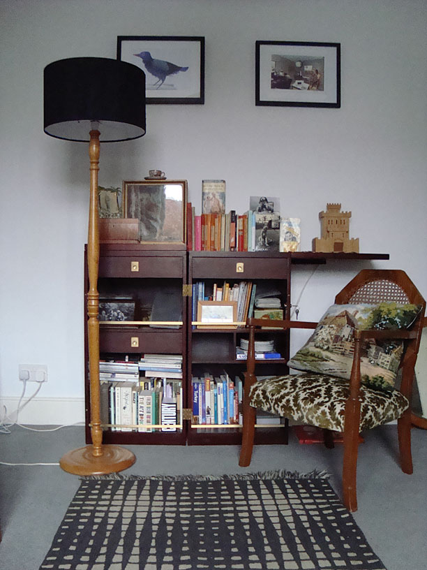 I'm going to re-upholster and re-cane the little chair; I added a new shade to the wooden standard lamp, while the sideboard came in pristine condition.